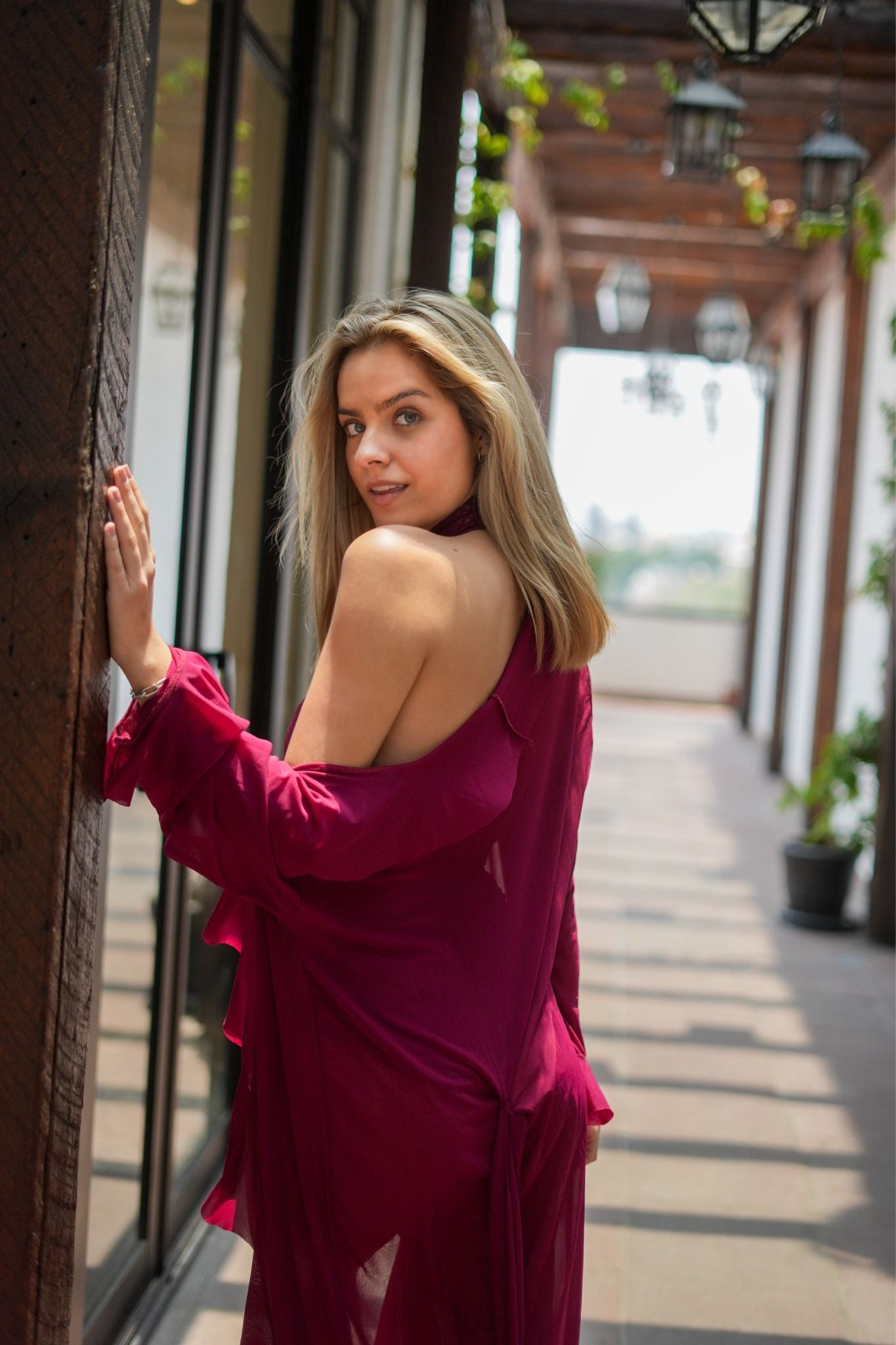 Ideal para usar sobre trajes de baño, esta bata es una opción versátil que combina elegancia y funcionalidad, permitiéndote lucir chic en todo momento.